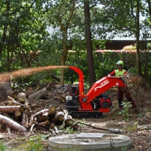 GTS1300进料斗宽大,侧枝也可一起进入,保障了操作的高效率。树枝(直径最大10cm)可以快速被切削成细小均匀的碎木片,从高置出料口喷出,便于收集。基于安全考虑,此款机器配有按压式急停开关,能使机器立即停止运行。