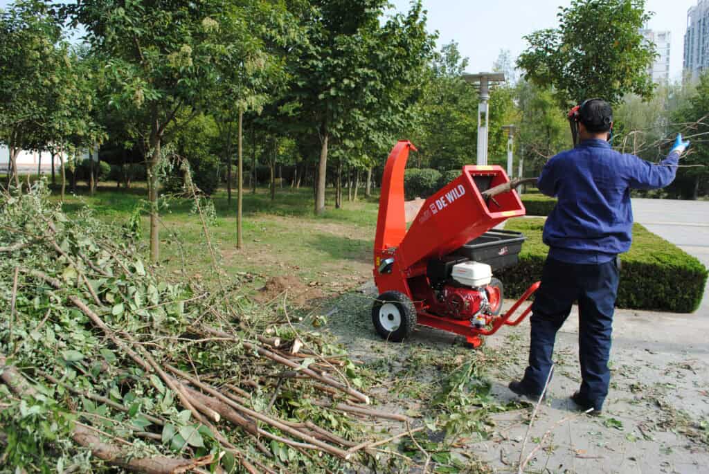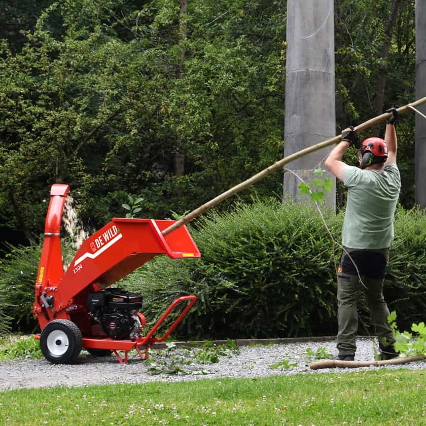 GTS1300进料斗宽大,侧枝也可一起进入,保障了操作的高效率。树枝(直径最大10cm)可以快速被切削成细小均匀的碎木片,从高置出料口喷出,便于收集。基于安全考虑,此款机器配有按压式急停开关,能使机器立即停止运行。