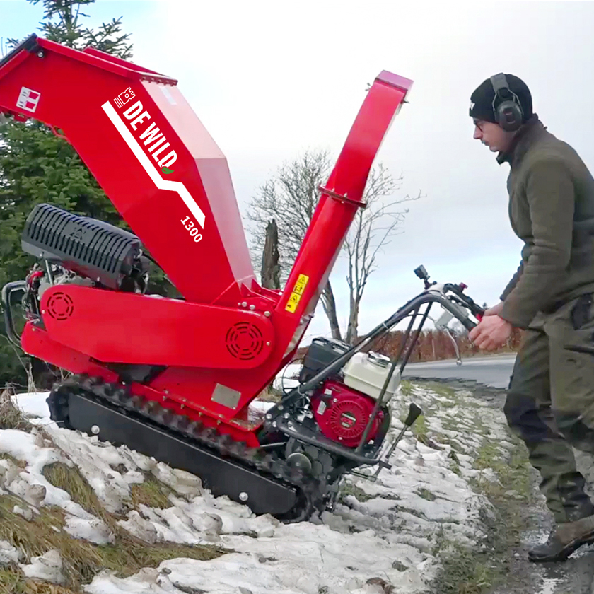 威而德新款履带自走碎枝机GTS1800R, 搭载本田GX630双缸汽油发动机,大马力动力更强劲。可将直径12cm的新鲜树枝卷入,即刻变废枝为木屑,高效处理枝条秸秆等绿色废弃物并实现循环利用。